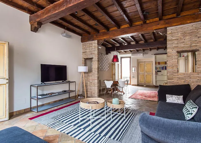 Este apartamento de 120 m^2 está a 10 minutos a pie de la Fontana di Trevi y a una distancia moderada del Monumento a Víctor Manuel II. El apartamento está situado a 5 minutos a pie de la Plaza Navona, a 10 minutos a pie de la estación de metro Barberini. A unos cuantos minutos en coche de este establecimiento se encuentra el Castillo de Sant'Angelo.